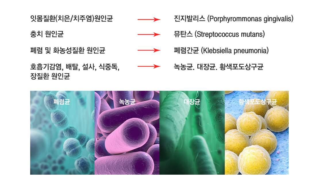 Àü¹® ±â°üÀÇ ½ÃÇè ¼ºÀû¼·Î »ì±Õ´É·ÂÀÌ Áõ¸íµÇ¾ú½À´Ï´Ù. ±¸°Àº ½Åü °Ç°À» ÁöŰ´Â ¼ö¹®Àå ¿ªÇÒÀ» ¼öÇà ÇÕ´Ï´Ù. Àϻ󿡼 ¹Ýº¹µÇ´Â ´Ü¼øÇÑ ¾çÄ¡·Î ÀÕ¸öÁúȯ ¹× ÃæÄ¡ÀÇ ¿øÀαÕÀ» 99.9 %»ç¸ê½Ã۰í, °¢Á¾ ÁúȯÀ» ÀÏÀ¸Å°´Â ´ëÇ¥ º´¿ø±Õ 4Á¾(Æó·Å°£±Õ, ³ì³ó±Õ, ´ëÀå±Õ, Ȳ»öÆ÷µµ»ó±¸±Õ)À» »ç¸ê½Ãŵ´Ï´Ù.